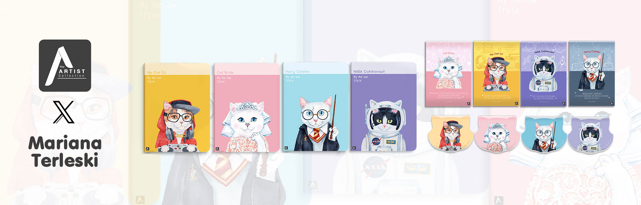 ARTISTMariana Terleski ศิลปินนักออกแบบลวดลายสีน้ำชื่อดังชาวบราซิลผลงานที่ผ่านมานักวาดผู้ออกแบบปฏิทิน My Me-ow Style และ My Dogs’ Stylesออกแบบลวดลาย รวมถึงออกแบบคาแรคเตอร์สัตว์และธรรมชาติ ARTIST COLLECTION Collection“My Me-ow Style” Collection“My Dogs’ Styles”